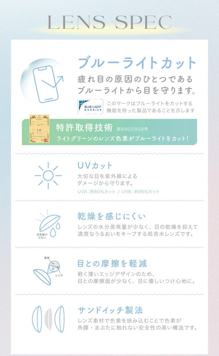 即使作為月拋,依然維持品牌標誌性的高飽和度色素強覆蓋力,能有效改變深色瞳孔,打造如外國人般的鮮明混血瞳色。配合顯色需求,通常採用適中至偏大的著色直徑,在改變顏色的同時,達到明顯的放大與眼型圓潤效果。月拋產品線通常集結品牌最受市場歡迎、最經典的長銷色號,讓消費者可以穩定回購心儀款式。