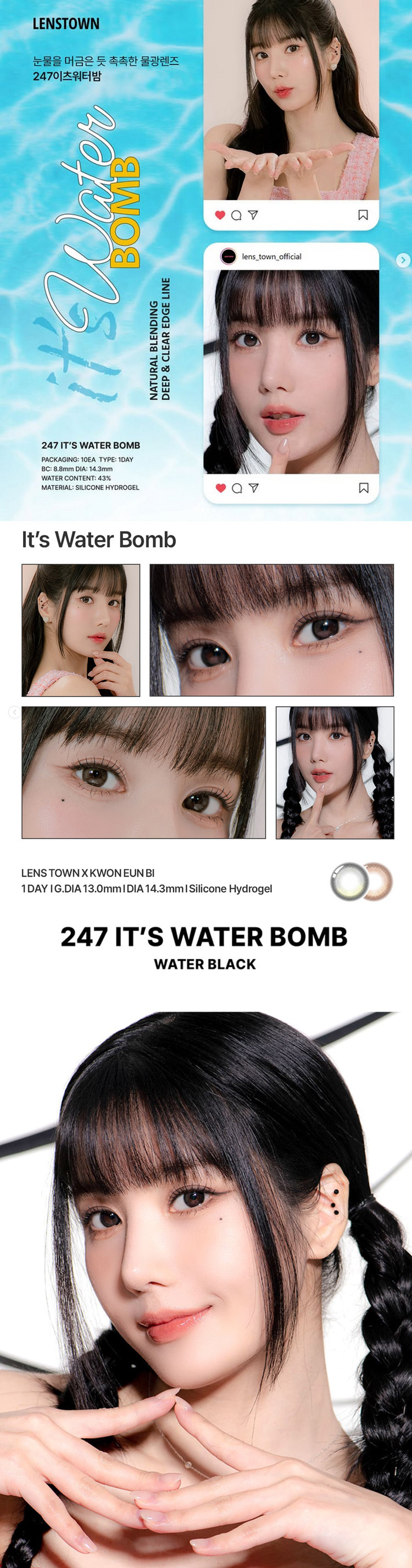Lenstown 247 It's Water Bomb 系列,其名如實——配戴瞬間彷彿有顆『水炸彈』在眼中綻放,帶來爆炸性的水潤清涼感!專為深受乾眼所苦的族群設計,採用頂級保濕科技,能鎖住水分長達數小時,讓你徹底告別乾澀疲勞。