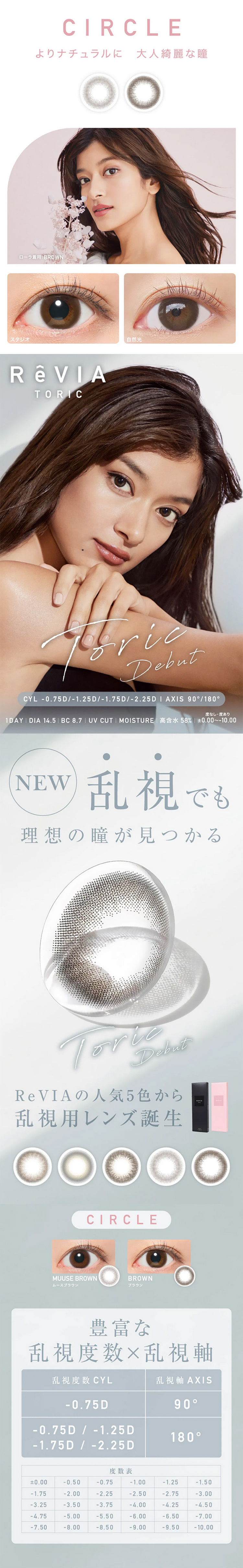 Revia 蕾美 Toric Circle Lens 散光 乱視用 1 Day 美瞳 彩色 日拋 隱形眼鏡 10片